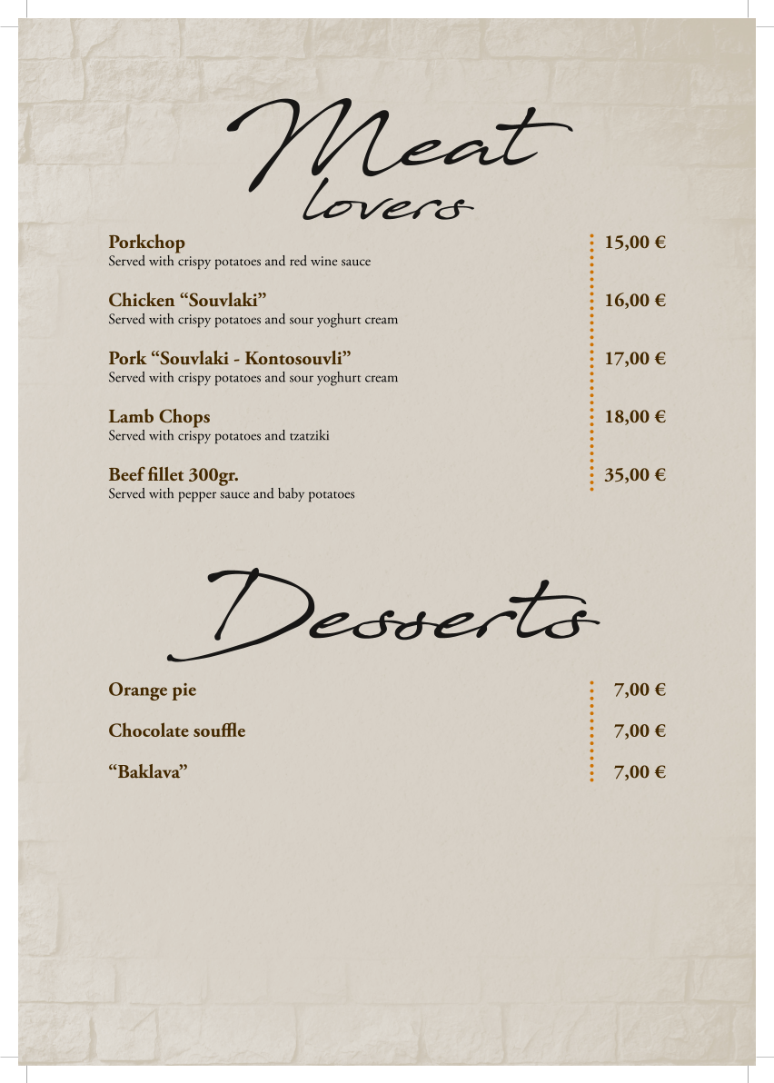 On the menu, you'll find a variety of options to suit different moments throughout the day. Start with light, fresh starters like Garlic Mushrooms or Cheese Saganaki Feta, ideal for sharing while enjoying a cocktail on the rooftop terrace. For those seeking something richer, dishes such as Beef Stifado, Lamb Kleftiko, or the perfectly cooked Tomahawk steak provide satisfying mains that pair well with local wines.