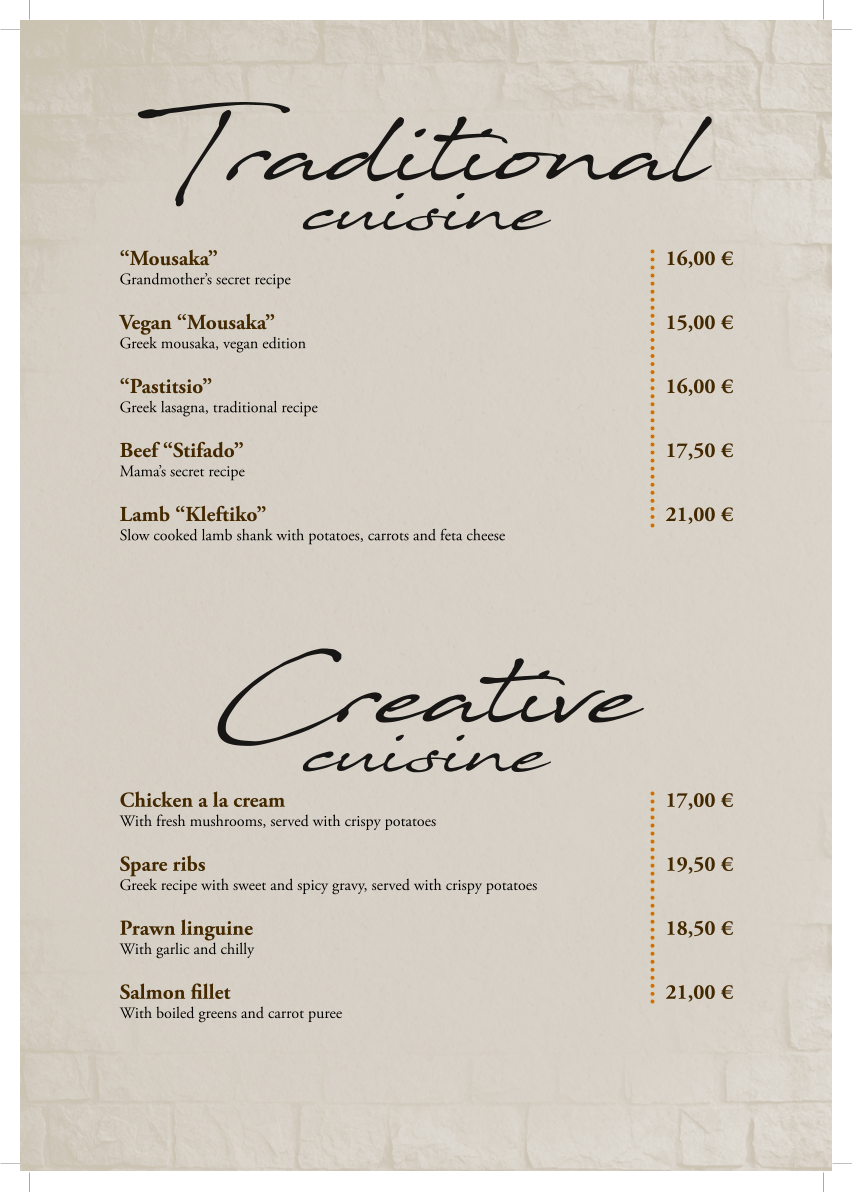 The Alchemist offers a thoughtfully curated menu that balances traditional Greek flavors with hearty, comforting dishes. The style is approachable and relaxed, perfect for savoring both casual lunches and leisurely dinners in a warm, inviting atmosphere.
